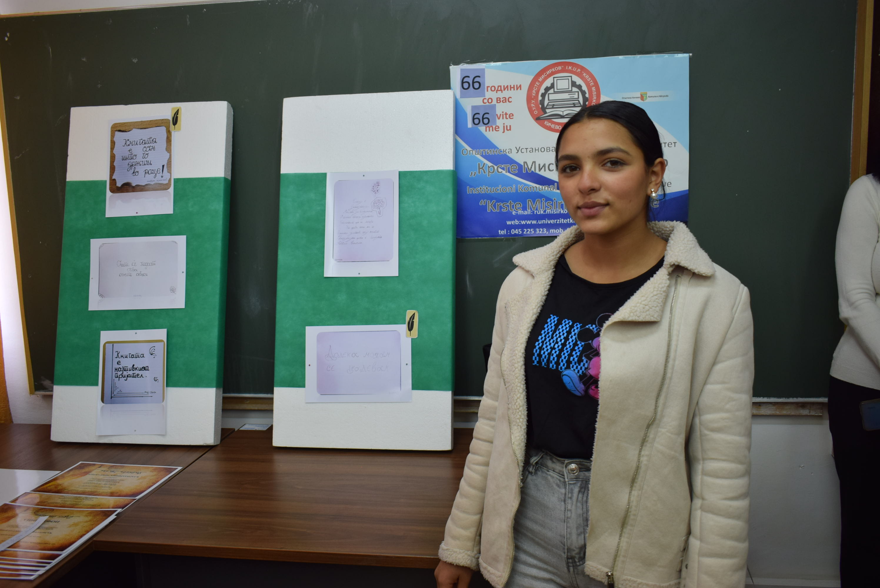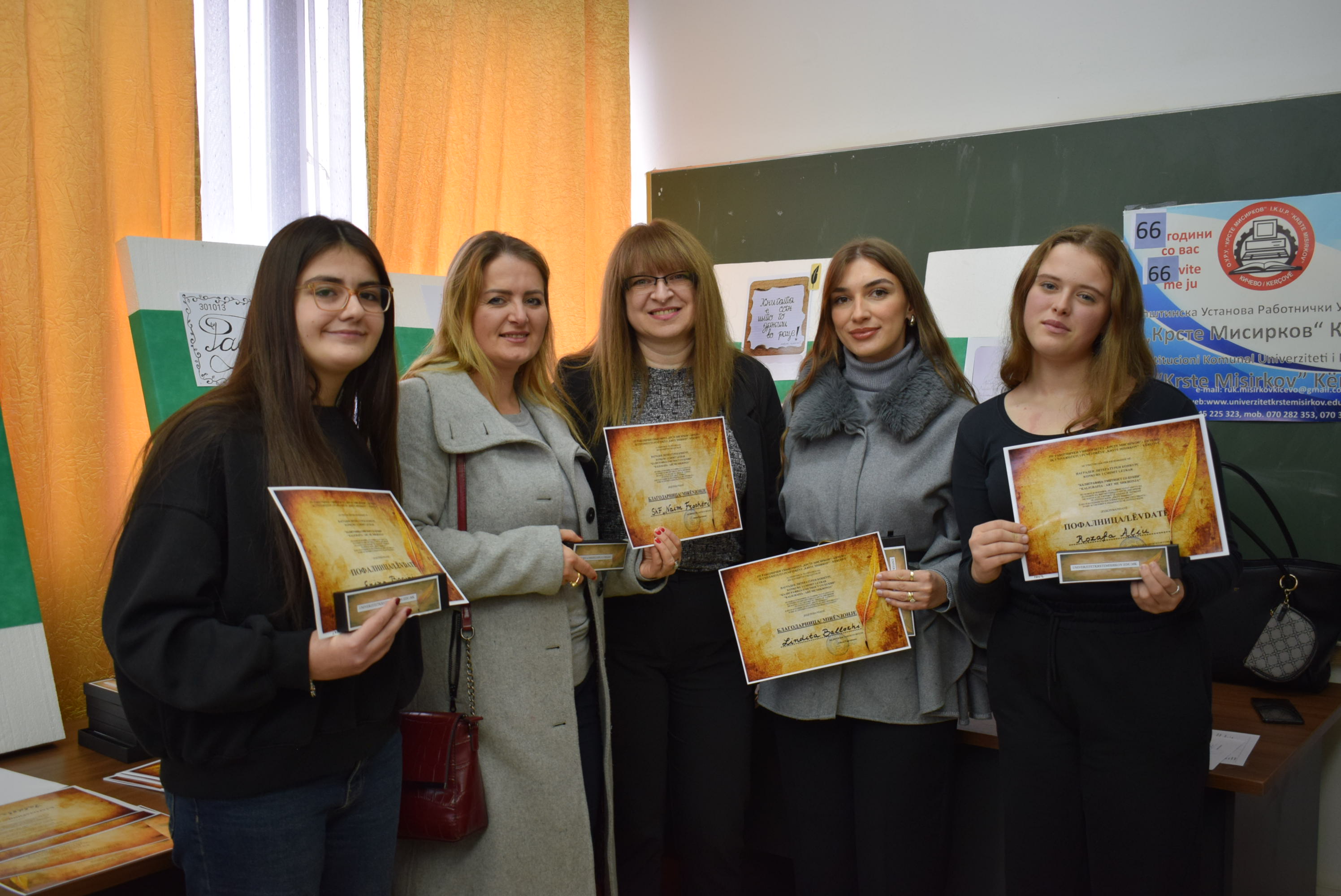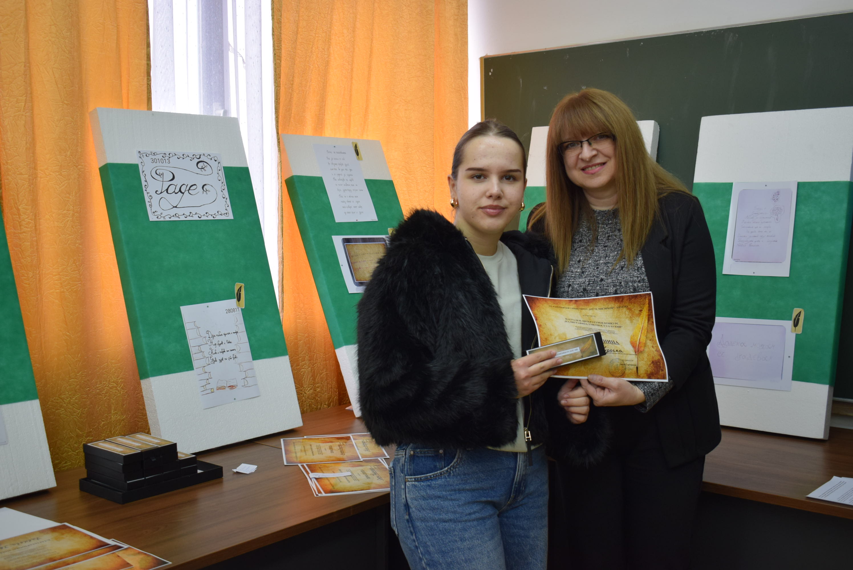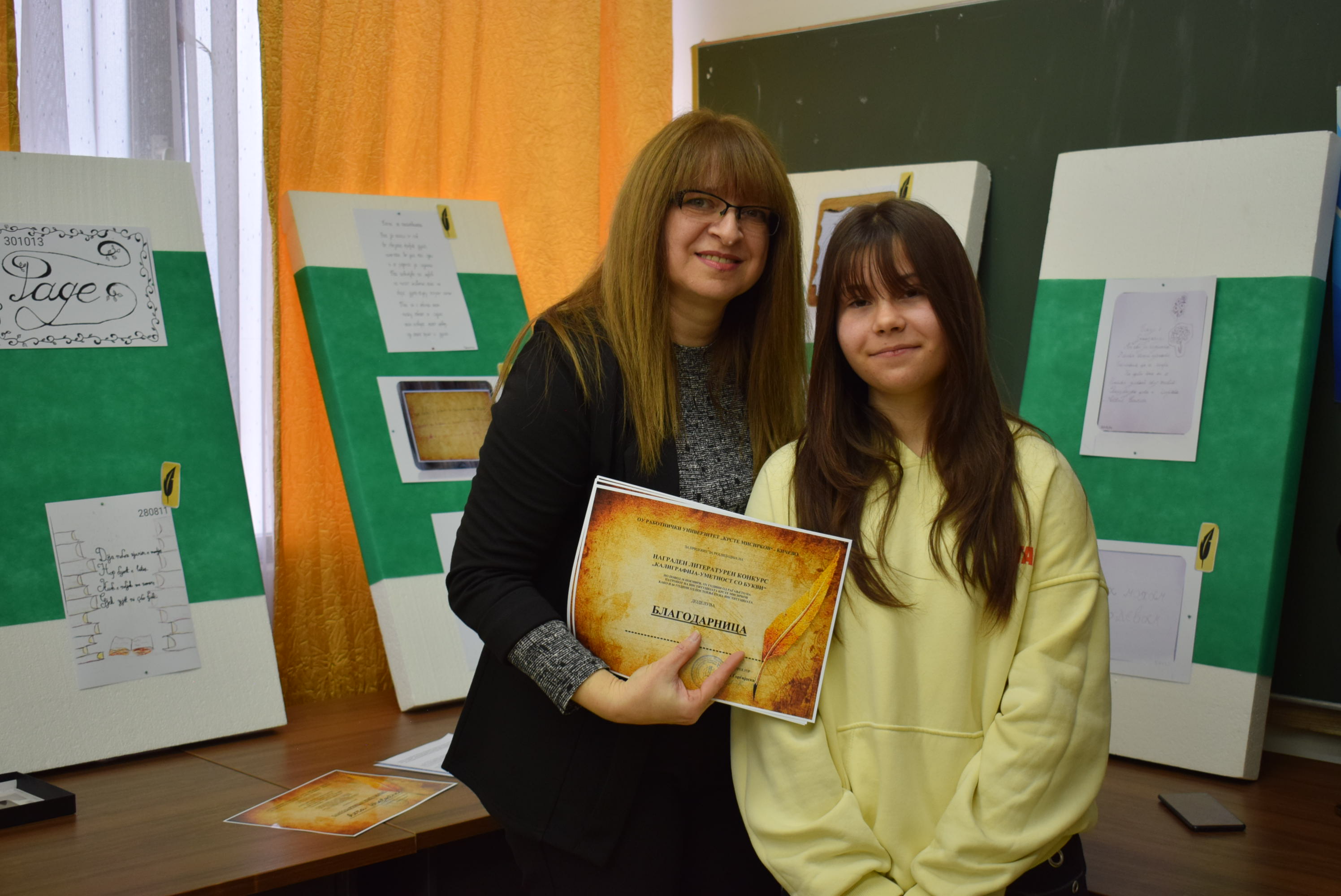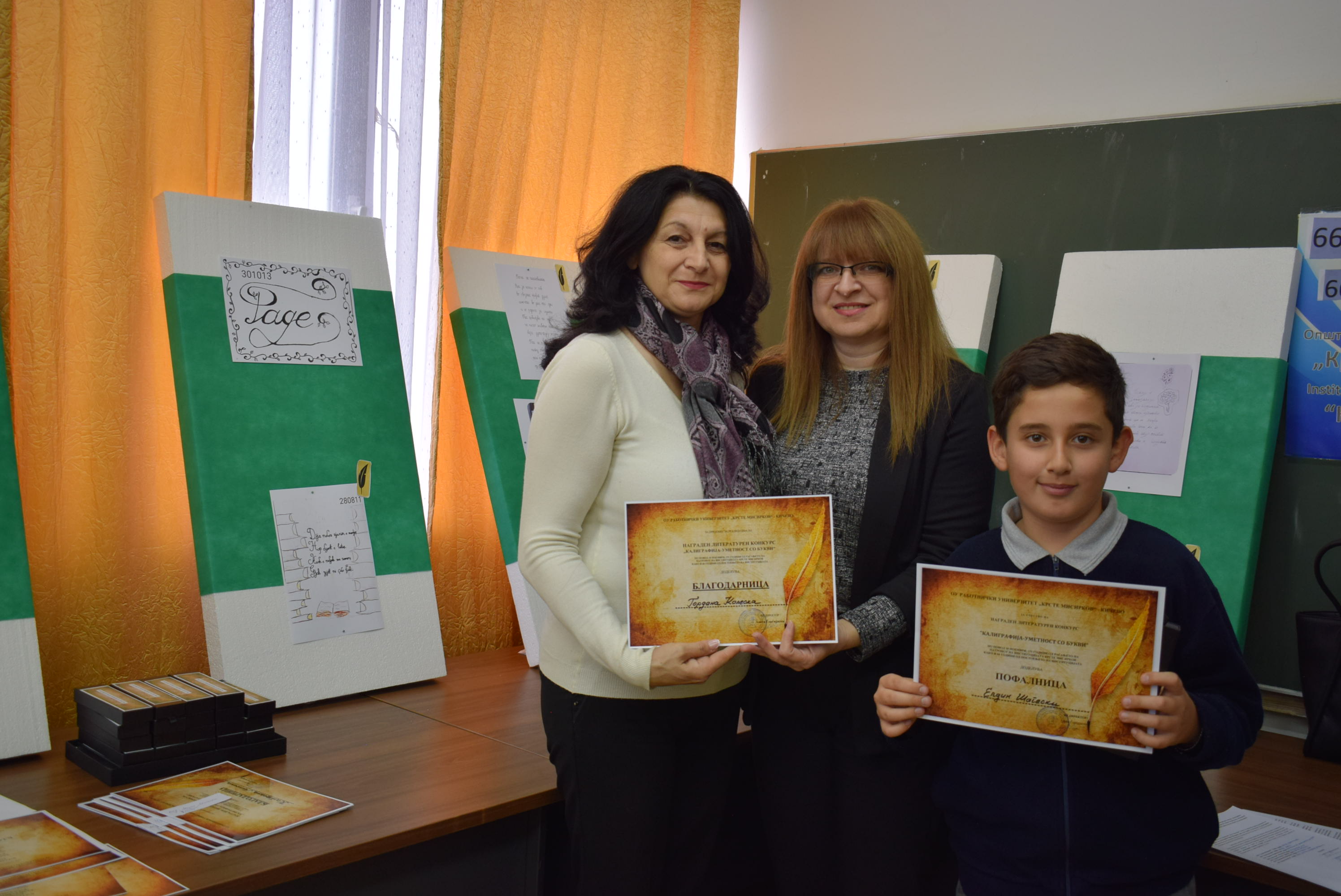 Çmimet dhe lëvdatat u dhanë për veprat më të mira të paraqitura në lidhje me konkursin letrar "Kaligrafia - Art me shkronja". Është një ndjesi e këndshme kur shikon veprat e shkruara me shkronja kaligrafike, të cilat shkruhen më mirë vit pas viti.Shumë faleminderit pjesëmarrësve, mentorëve dhe të gjithë të tjerëve që morën pjesë në këtë aktivitet, i cili ishte me rastin e 151-vjetorit të lindjes së patronit tonë Krste Misirkov, si dhe 66 vjet të ekzistencës së institucionit. Ekspozita do të jetë e hapur për vizitorët për 10 ditët e ardhshme të punës.