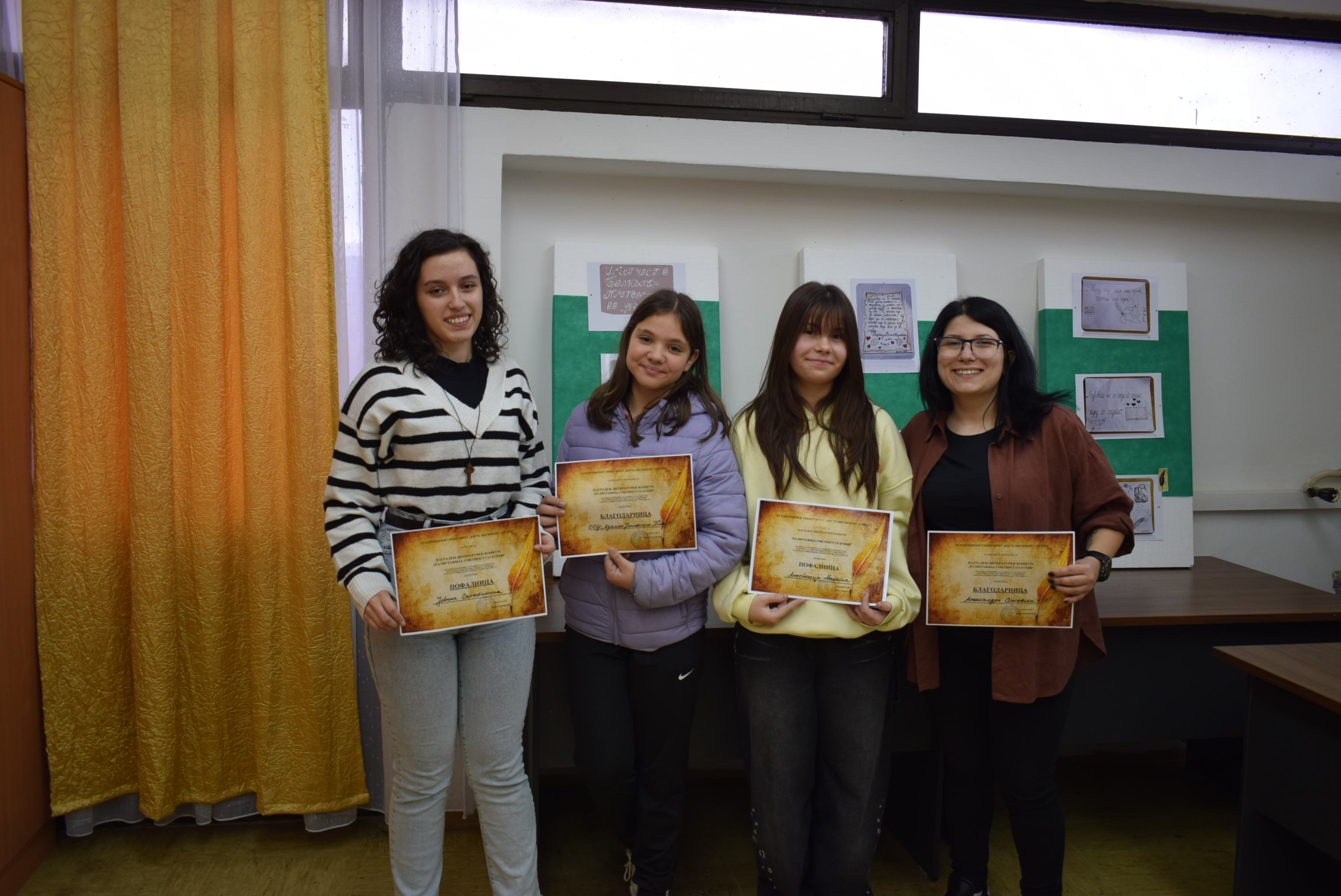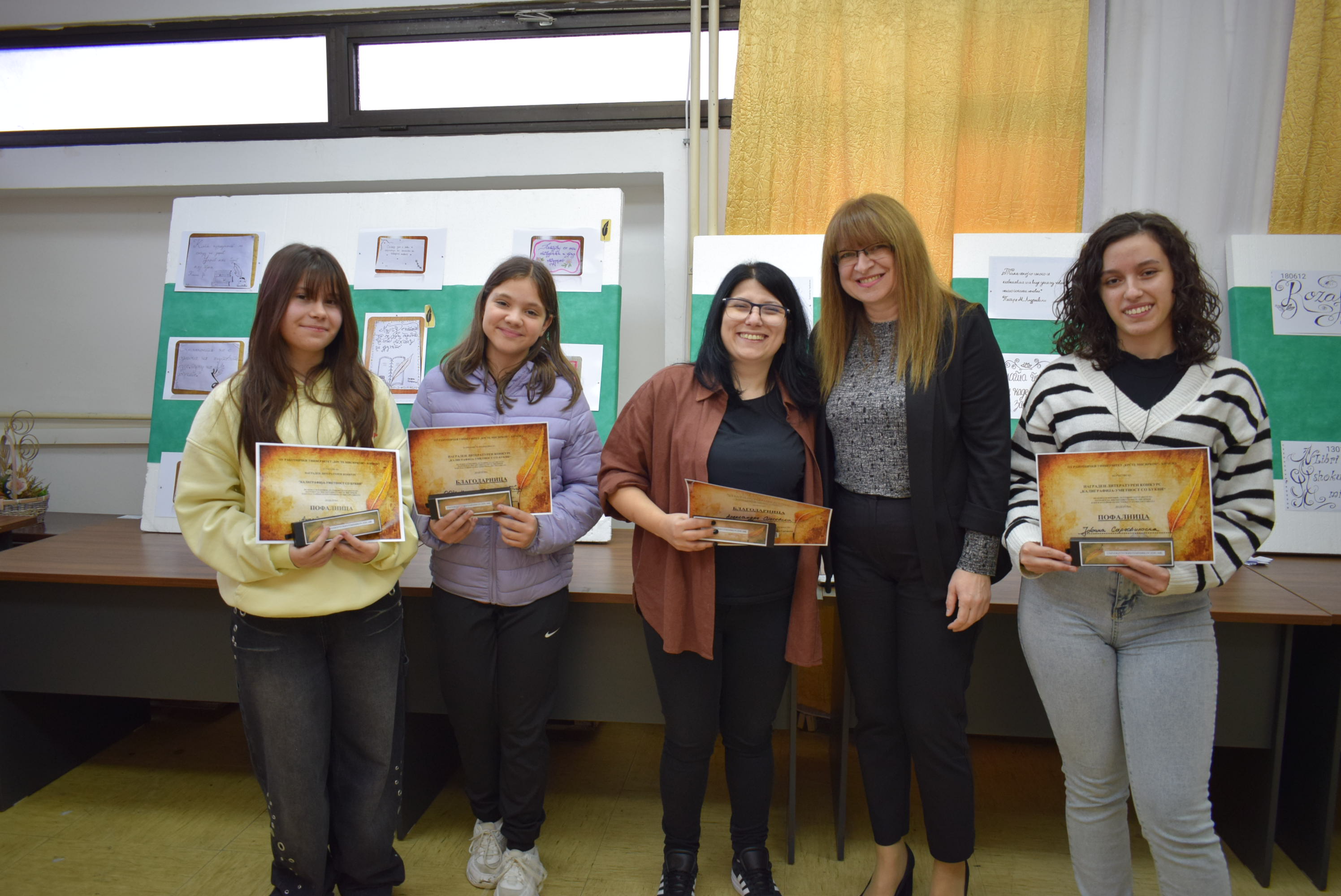 Доделени наградите и Пофалниците за најдобрите пристигнати творби во врска со литературниот конкурс ,,Калиграфија - уметност со букви“. Убаво е чувството кога ќе ги погледнете творбите напишани со калигравски букви кои од година во година се се подобро напишани. Голема благодарност до учесниците, менторите и сите останати кои присуствуваа на овој настан, кој беше со повод за 151 година од раѓањето на нашиот патрон Крсте Мисирков, како и 66 години од постоењето на институцијата. Изложбата ќе биде отворена за посетители наредните 10 работни денови.