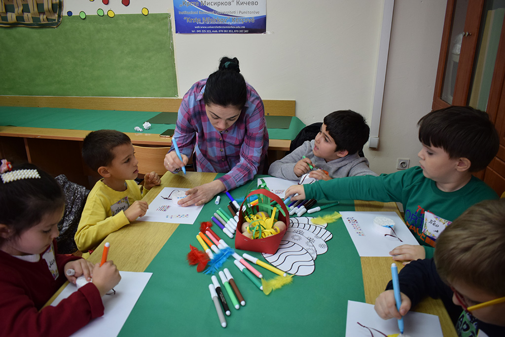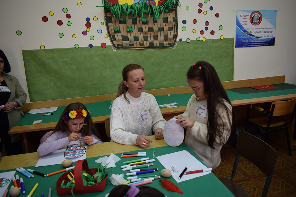 Успешно реализирани двата делови од работилницата ,,Велигденска уметност“, која беше организирана по повод претстојниот празник Велигден. Оваа работилница е дел од проектот од национален интрес во културата на креативни индустрии со наслов ,,Креативноста не поврзува - мултикултурни и инклузивни работилници“, поддржан од страна на Министерството за култура. И бидејќи нели креативноста не поврзува, во првиот дел имавме виртуелни гости ученици-учесници кои идентично твореа, пееа, кажуваа гатанки. Тие од Скопје, Општина Кисела Вода од ООУ ,,Кирил Пејчиновиќ“, четвртоодделенци кои преку платформата ZOOM така далеку но сепак блиску имаа можност да се дружат и да творат и пеат со учениците-учесници од основните училишта од нашата Општина Кичево. И секако и во оваа работилница беа вклучени и деца со посебни потреби кои со остантите подеднакво беа креативни. Ова беше едно уникатно предвелигденско дружење со насмевки!